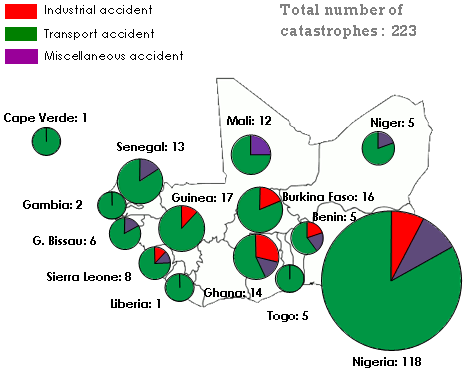 3 | Nigeria | Lagos | 26/12/2006 | Explosion of an oil pipeline | 269 | 65 |