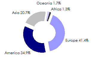 in millions USD| America | Europe | Asia | Oceania | Africa | World | |