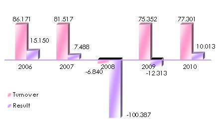 Evolution of AIG group’s global turnover and result: 2006-2010