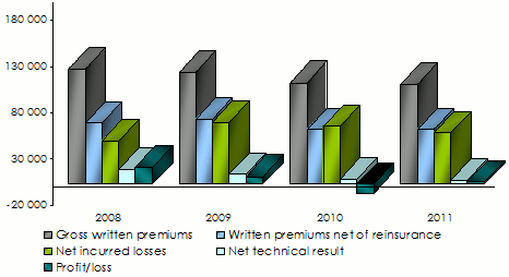 Net technical results per class of business: 2008-2011