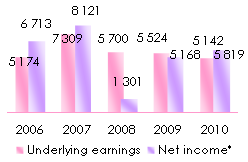 * For 2010, the net income excludes the exceptional charge of 2.1 billion USD related to the sale of some traditional life and savings business in the United Kingdom.