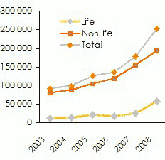 - Life and non life premiums (2008): 500 million USD