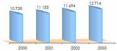 in USDYears | 2000 | 2001 | 2002 | 2003 |