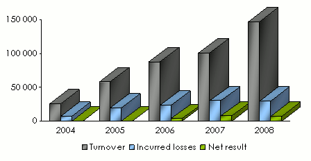 Turnover's evolution per class of business 2004-2008