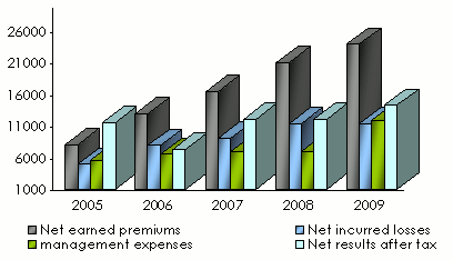 Thanks to an initial excellent share capital, the company soon got positioned on the market niche of fire and damage to property risks which, for the time being, account for more than 50% of its turnover.