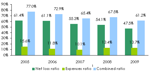 in USD| Insurance | 2005 | 2006 | 2007 | 2008 | 2009 | 2009 shares | 2008/09 growth |