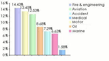 Distribution of premiums by classes of business in 2005