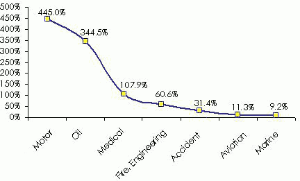 Distribution of non-life premiums by classes of business in 2005