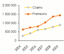 in thousands USD| Premiums 2009 | Market shares | Premiums 2008 | Market shares | 2008/09 growth | |