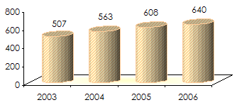 in USD| Classes | 2003 | % of T/O* | 2004 | % of T/O* | 2005 | % of T/O* | 2006 | % of T/O* |