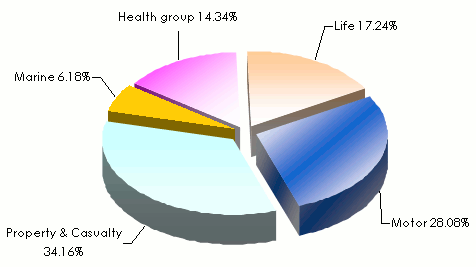 Premiums split by class of business in 2006