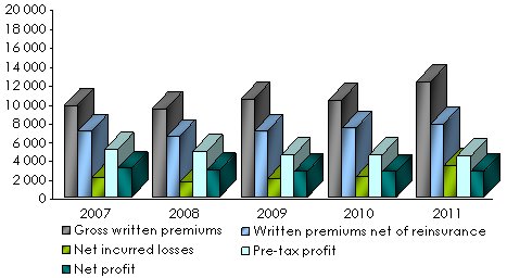 Net earned premiums per non life insurance: 2010-2011