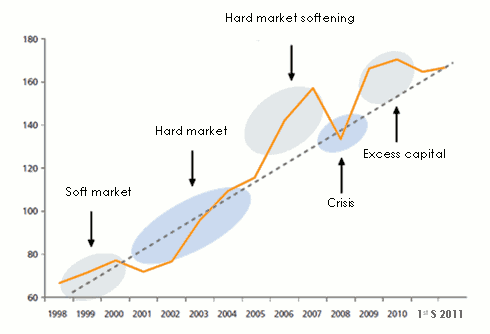 Source: Guy Carpenter & Company, LLC According to AON, reinsurers will conclude the year 2011 with a global capital level above the 470 billion USD posted at the beginning of the year despite the cost of the natural catastrophes of the first semester of 2011.