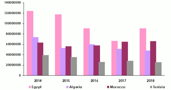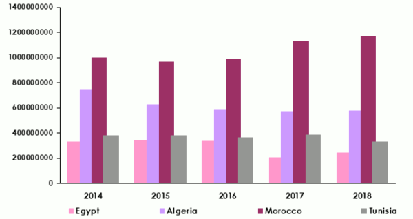 Morocco | 127 977 000 | 133 273 000 | 130 904 000 | 142 745 000 | 148 731 000 |