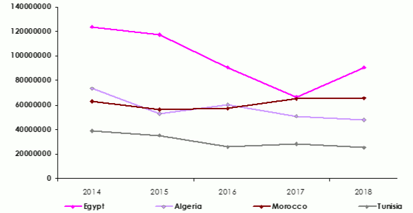 Tunisia | 117 179 000 | 117 760 000 | 115 797 000 | 118 894 000 | 107 029 000 |