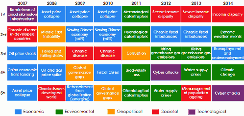 he annual World Economic Forum studies have highlighted the evolution of risk perception by companies, showing that political risks are, until 2011, the most dreaded by companies in terms of likelihood of occurrence. They remain equally feared in terms of impact even if they are less present today in the minds of corporate business.