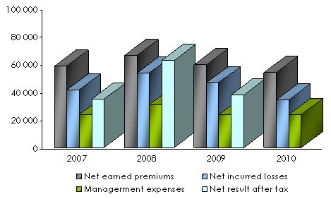 At the end of 2010, investments income amounted to 35 212 000 USD while the amount of insurance premiums is of approximately 143 000 000 USD.