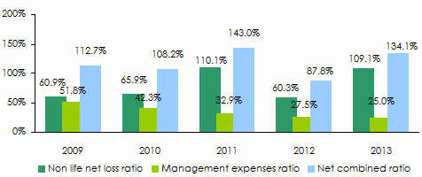 Non life net combined ratio | 112.7% | 108.2% | 143.0% | 87.8% | 134.1% |