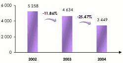 The 2005 turnover amounted to 2 407 million EUR (2 851 million USD), that is half the one achieved in 2002 (5 016 million EUR or 5 258 million USD).