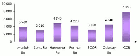 SCOR’s operating costs are higher than those of most reinsurers. By the end of 2004, they were higher than in 2002. The premium-per-employee is lower for the French reinsurer than that of its main competitors. A restructuring plan was designed to shed hundreds of jobs.