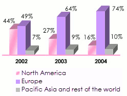 - increase in European and Pacific Asia business. Reduction of the business volume in USA and Bermuda
