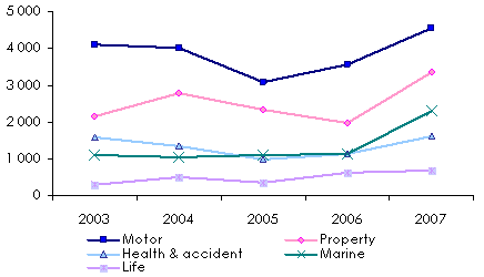 Health and accident | 1 590 130 | 1 345 800 | 976 400 | 1 148 500 | 1 607 400 | 12.50% | |