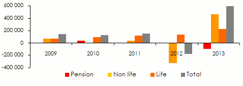 Total non life | 70 278 | -3 192 | 35 634 | - 314 940 | 460 939 |