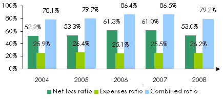 Evolution of premiums, losses, management expenses and results