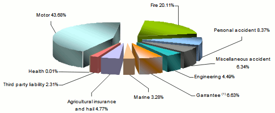 Breakdown of non life insurance turnover per class of business in 2017