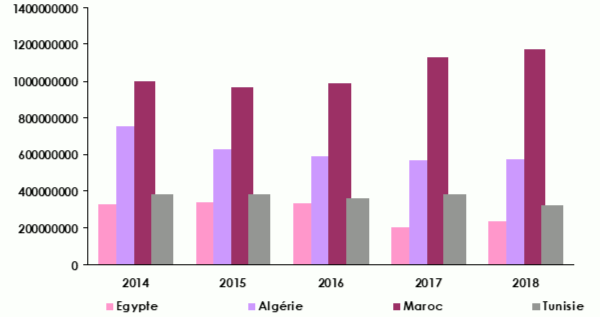 Maroc | 997 534 000 | 966 432 000 | 988 631 000 | 1 128 389 000 | 1 169 453 000 |