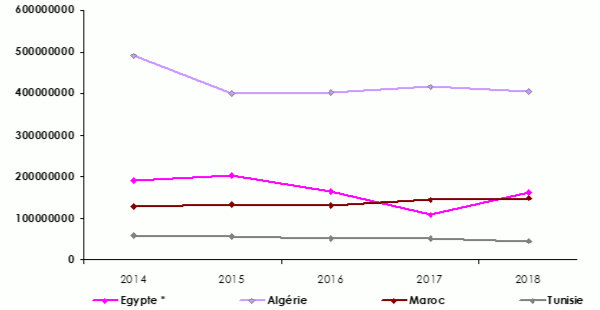 Algérie | 751 230 000 | 627 177 000 | 592 286 000 | 567 860 000 | 573 847 000 |