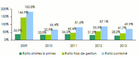 Ratio combiné | 183,8% | 66,4% | 81,6% | 87,1% | 69,9% |