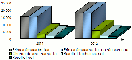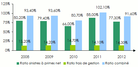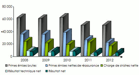 Evolution des primes, sinistres et résultats: 2008-2012
