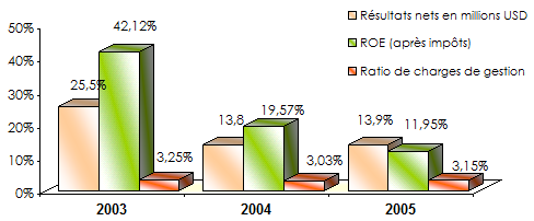 en millions USD| Branches | 2001 | 2002 | 2003 | 2004 | 2005 |