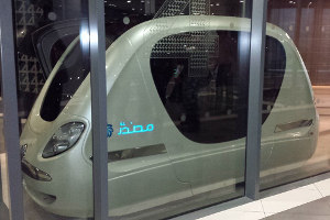 Masdar City: des véhicules sans chauffeur Masdar City expérimente un système de transport en commun et individuel sans chauffeur. Des cabines pouvant transporter de 1 à 10 personnes roulent automatiquement dans les sous-sols de la ville. En fonction du trafic et des trajets, les véhicules qui circulent à 40 Km/h choisissent de façon autonome le plus court chemin pour aller d’un point à un autre. | |