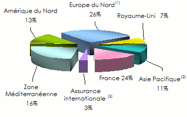 Répartition en % des activités d’assurance 2010 par zone géographique