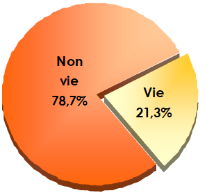 Répartition vie et non vie en 2004 | Répartition par branche des primes émises en 2004 | |