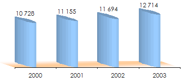 en USD| Branches | 2000 | 2001 | 2002 | 2003 |