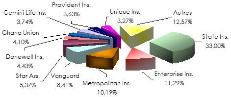 Ghana Union Assurance | 34 192 | 4 181 630 | 4 215 823 | 4,10% |