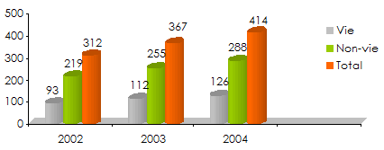 en milliers USD| 2002 | 2003 | 2004 | Taux de croissance 2003/2004 | |