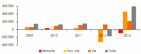 - Primes vie et non vie (2013): 12 700 millions USD