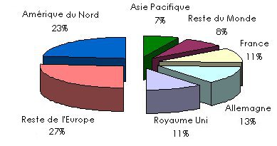 En Europe, l’équilibre majeur concerne les trois principaux marchés: Grande Bretagne, Allemagne et France dont les parts se situeraient entre 11% et 13%.