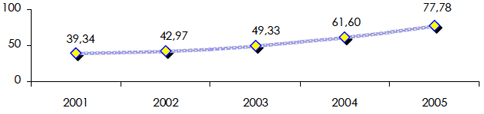 en millions USD| 2001 | 2002 | 2003 | 2004 | 2005 | |