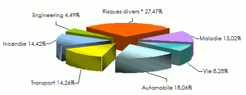 en milliers USD| Incendie | Transport | Auto | Engg | Risques divers * | Total non vie | Vie | Total | |