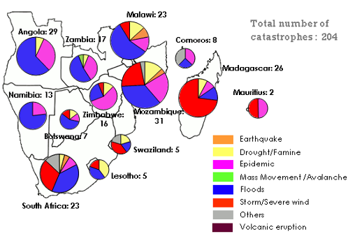 17 | Namibia | Kunene, Oshana, Oshikoto | 01/03/2011 | Floods | 108 | 500 000 |