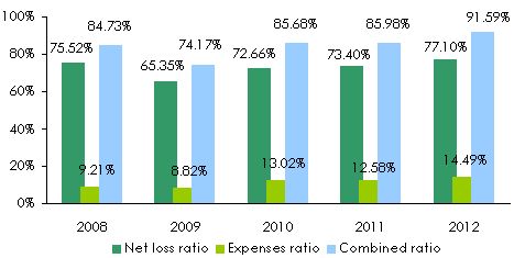 ADNIC: breakdown of net earned premiums per class of business: 2008-2012
