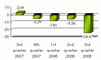 - September 14, 2008:The large rating agencies downgrade the company's rating.