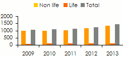 - Life and non life premiums (2013): 1 467 million USD