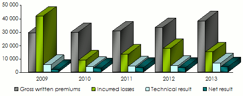 Evolution of premiums, losses and results