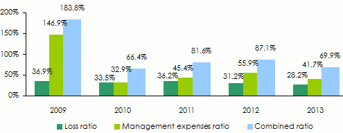 Loss ratio per class of business: 2009-2013